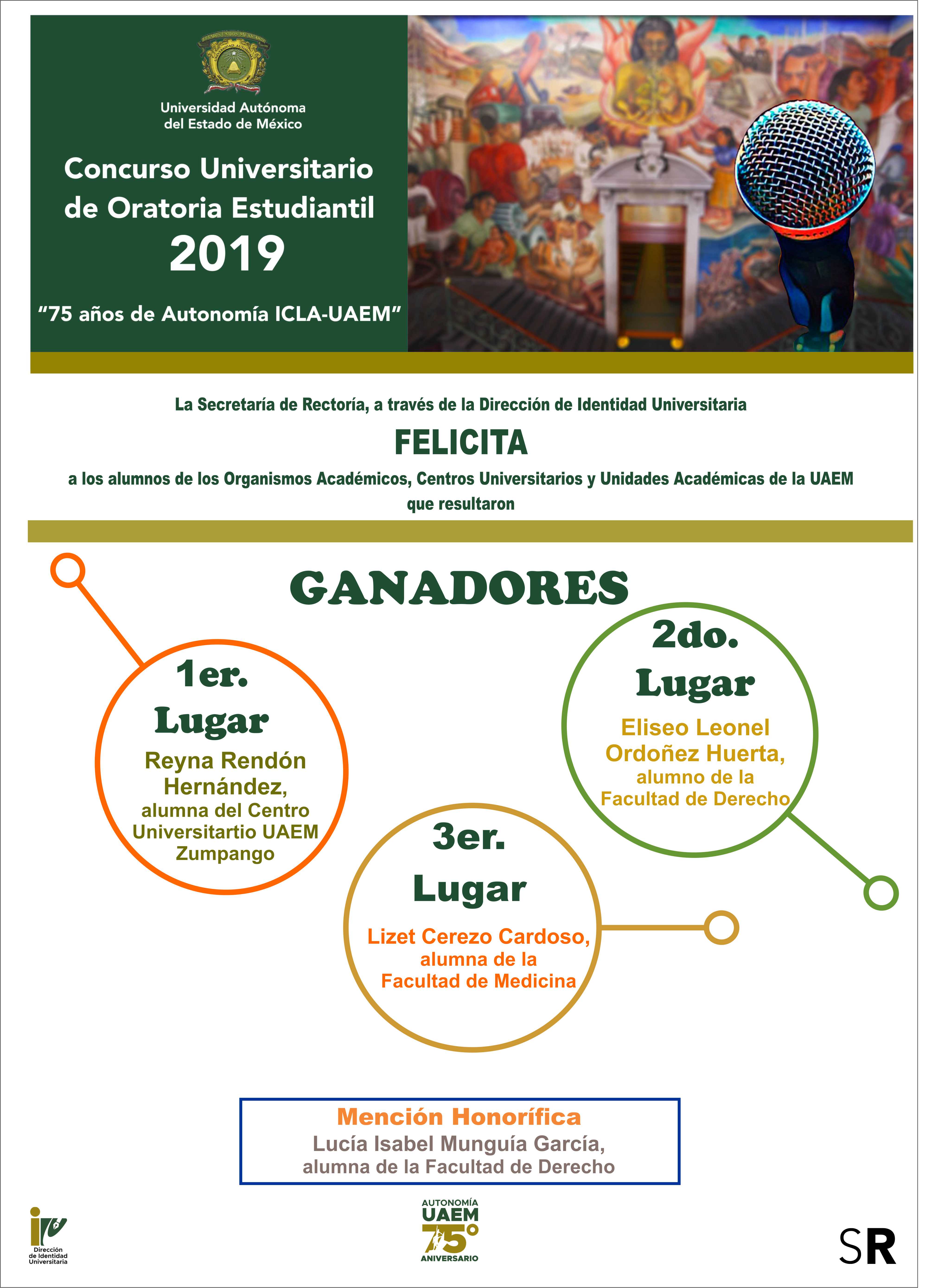 Ganadores del Concurso Universitario de Oratoria Estudiantil “75 años de Autonomía ICLA-UAEM” Nivel Superior