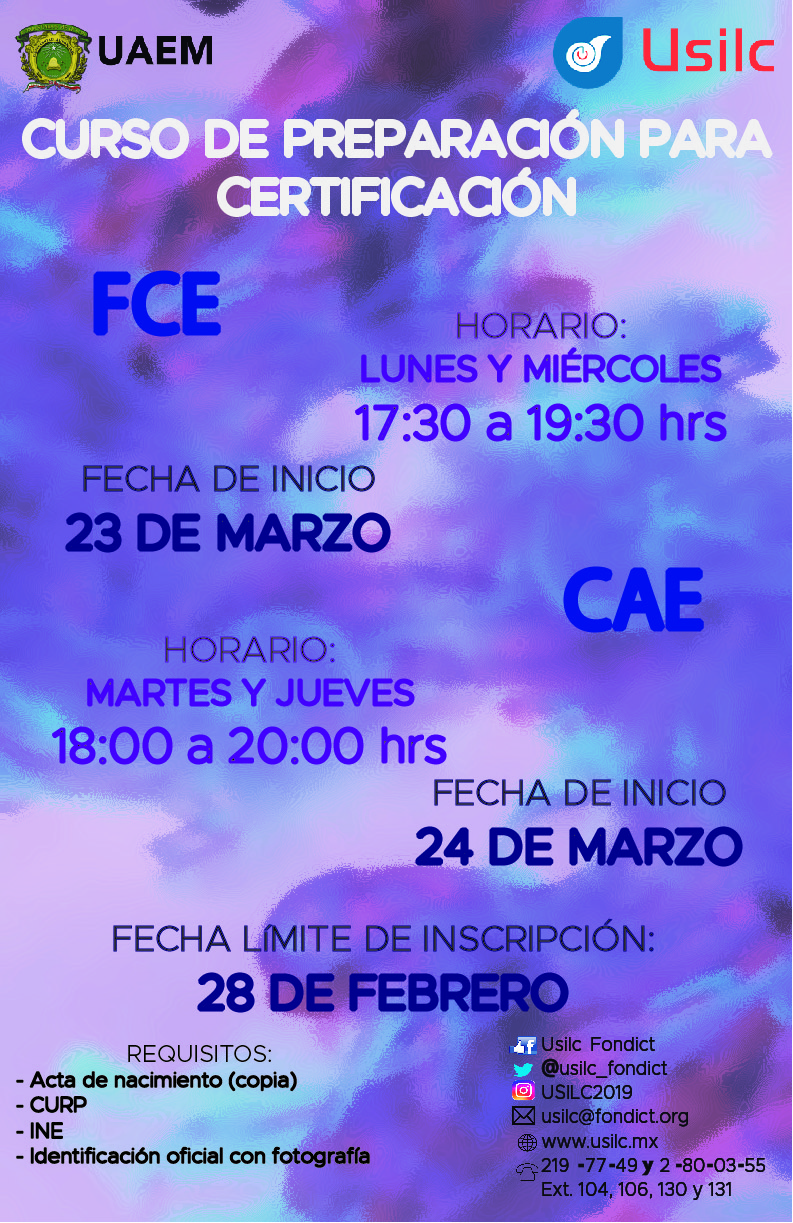 Cursos de Certificación TOEFL ITP; Cambridge First, CAE 1