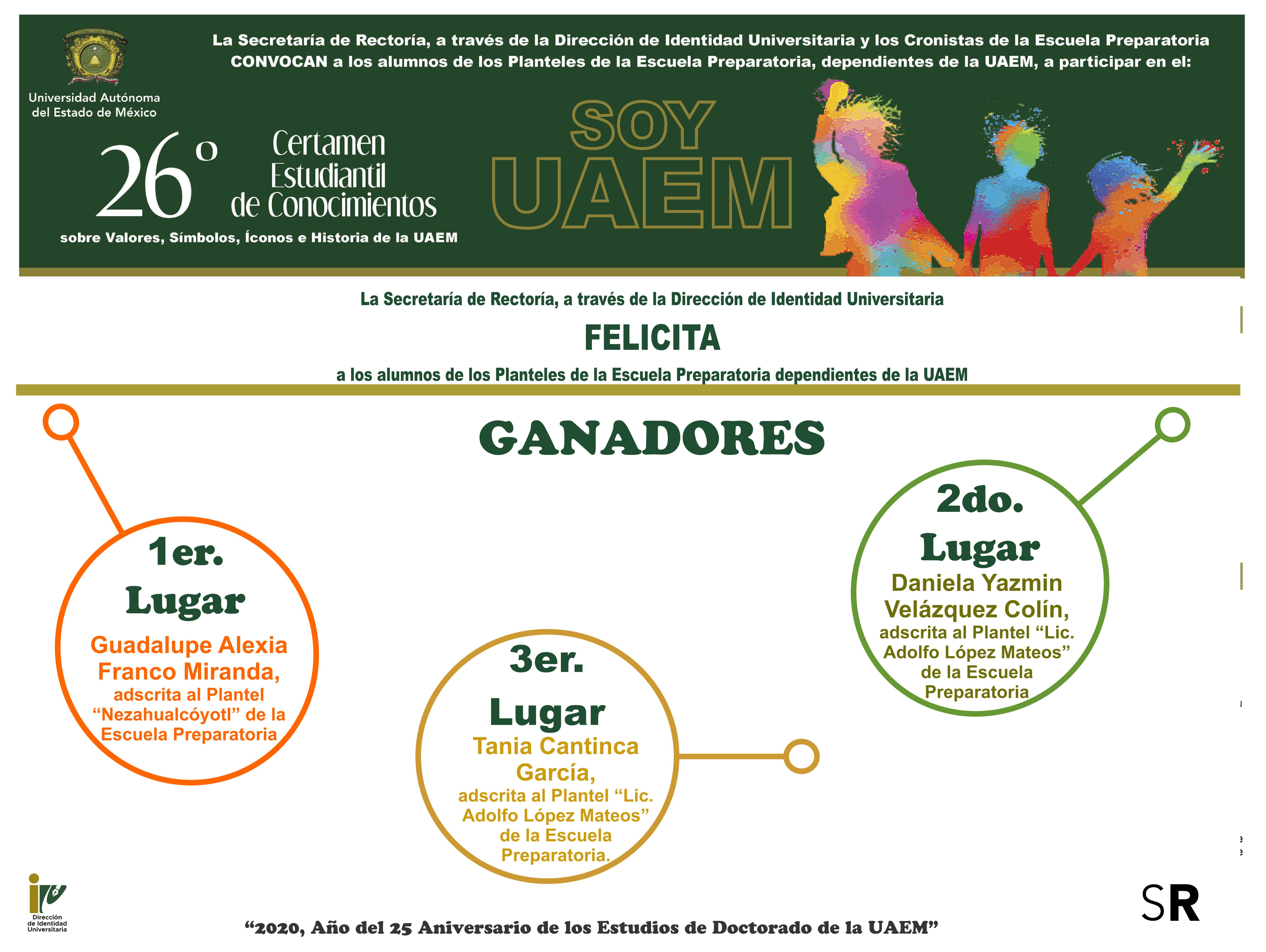 Ganadores del 26 Certamen Estudiantil de Conocimientos 2020, Nivel Medio Superior