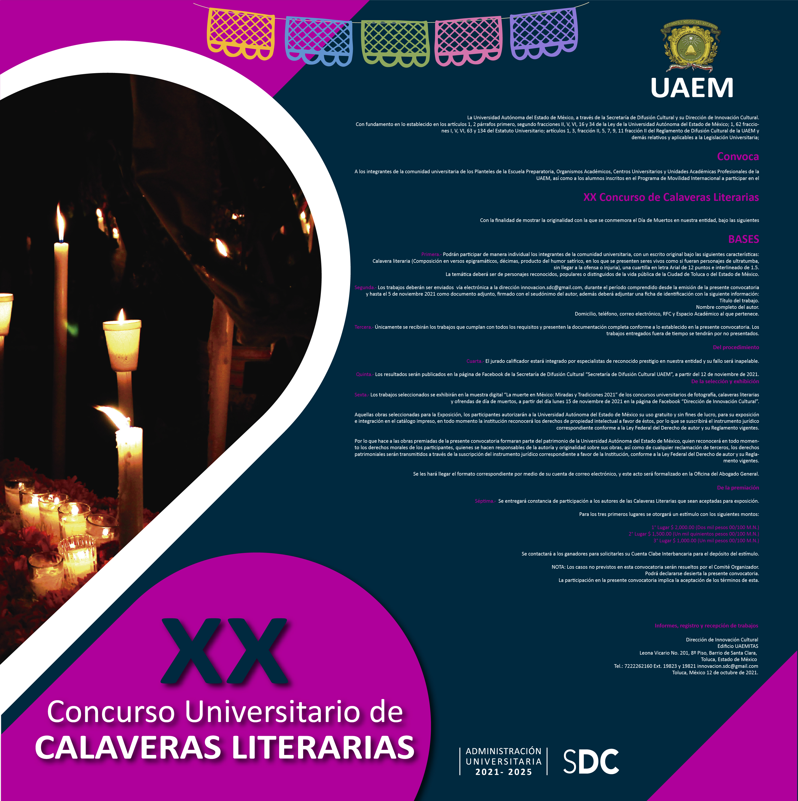 XX CONCURSO DE CALAVERAS LITERARIAS, XX CONCURSO DE FOTOGRAFÍA Y el XX CONCURSO DE OFRENDAS DE DÍA DE MUERTOS 2021. 5