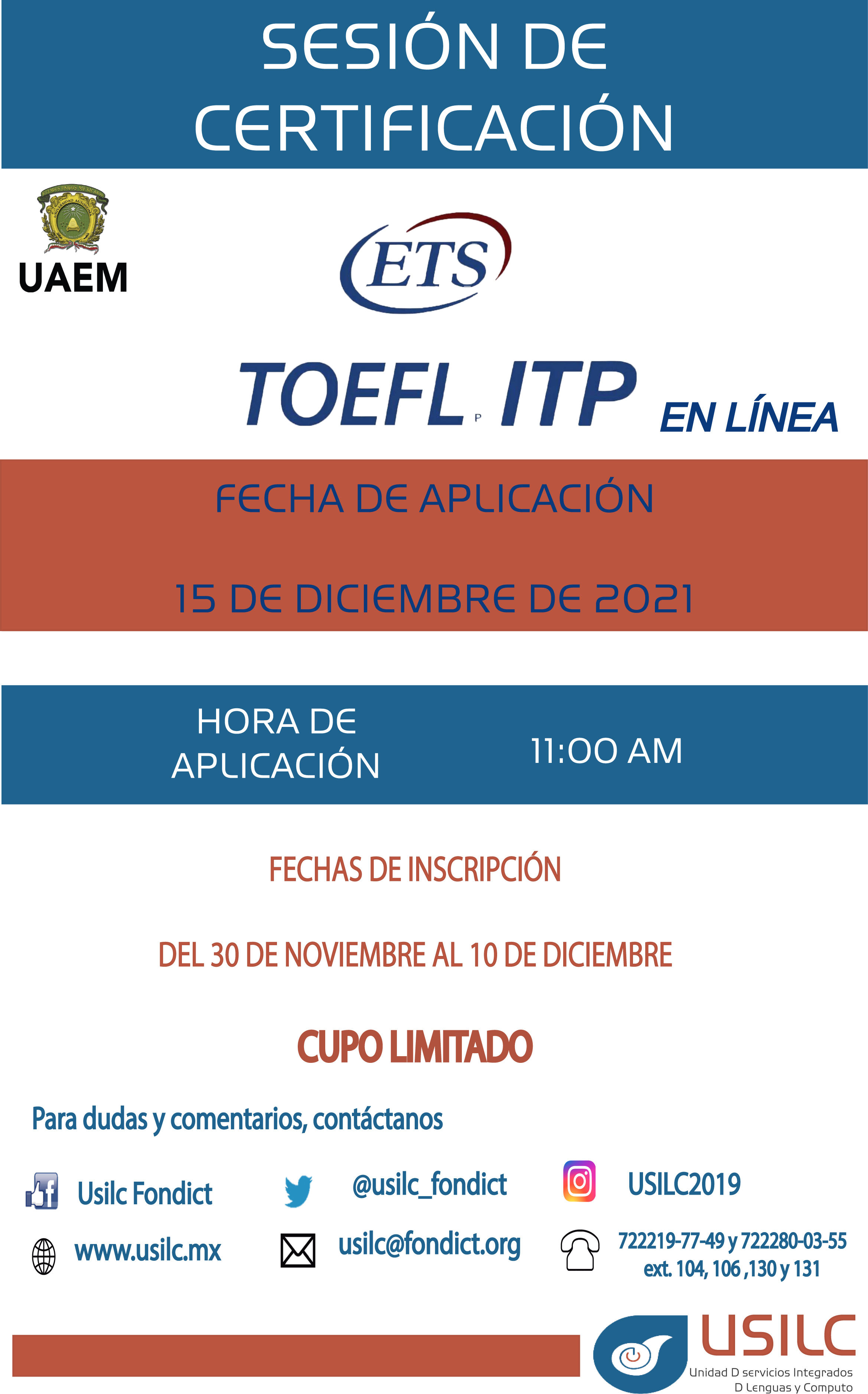 Sesión de Certificación TOEFL ITP en línea