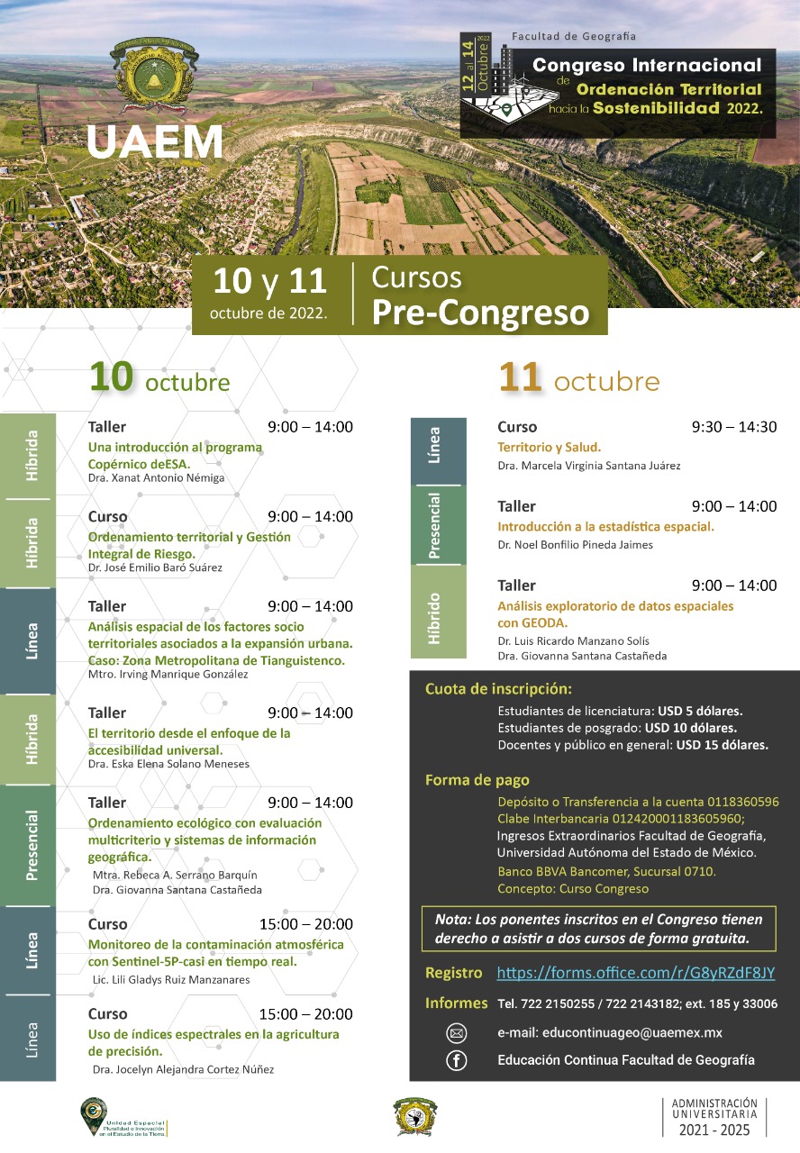 CURSOS Y TALLERES PRE-CONGRESO “CONGRESO INTERNACIONAL DE ORDENACIÓN TERRITORIAL HACIA LA SOSTENIBILIDAD, 2022”