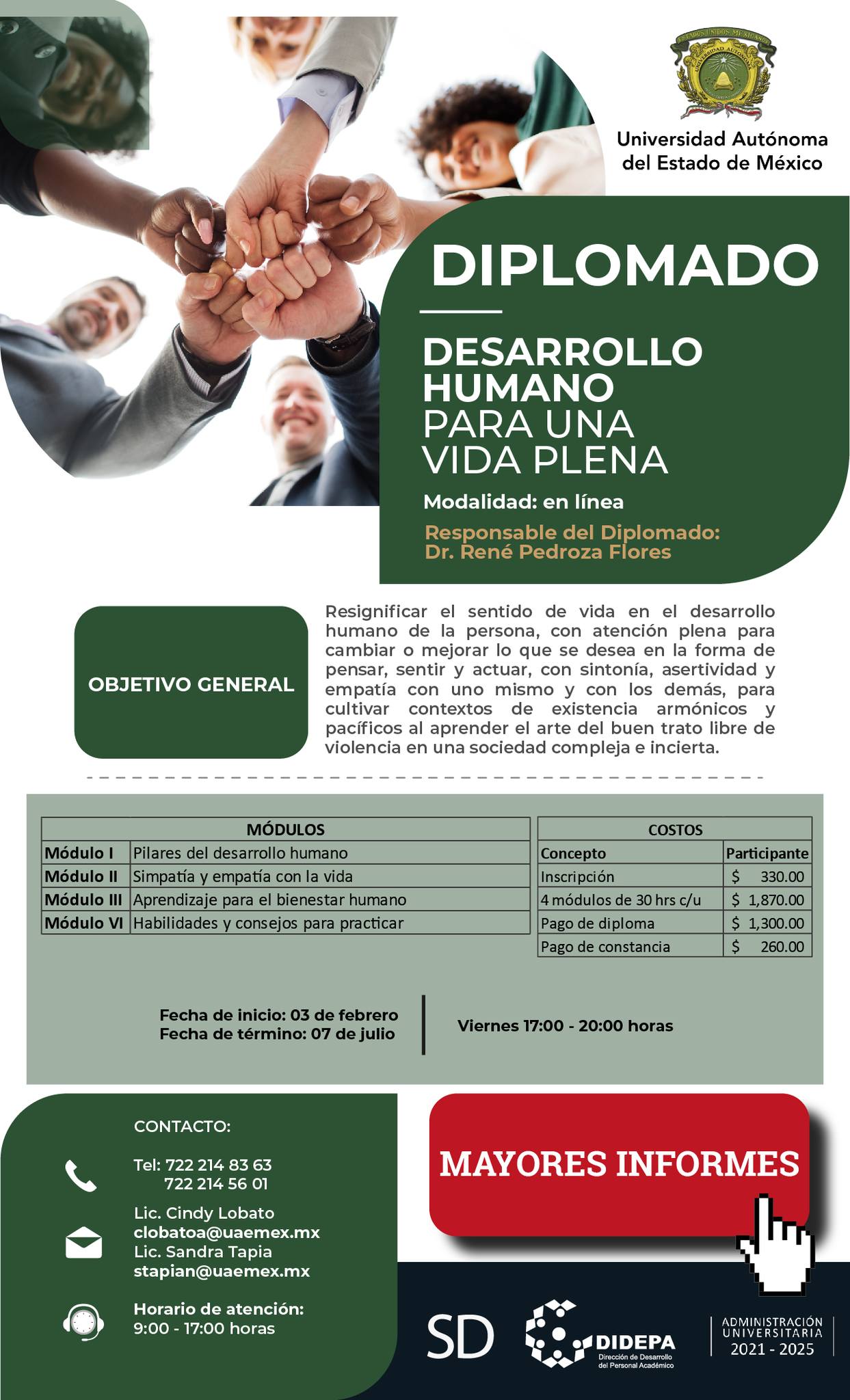 Última semana de INSCRIPCIÓN AL DIPLOMADO en DESARROLLO HUMANO PARA LA VIDA PLENA