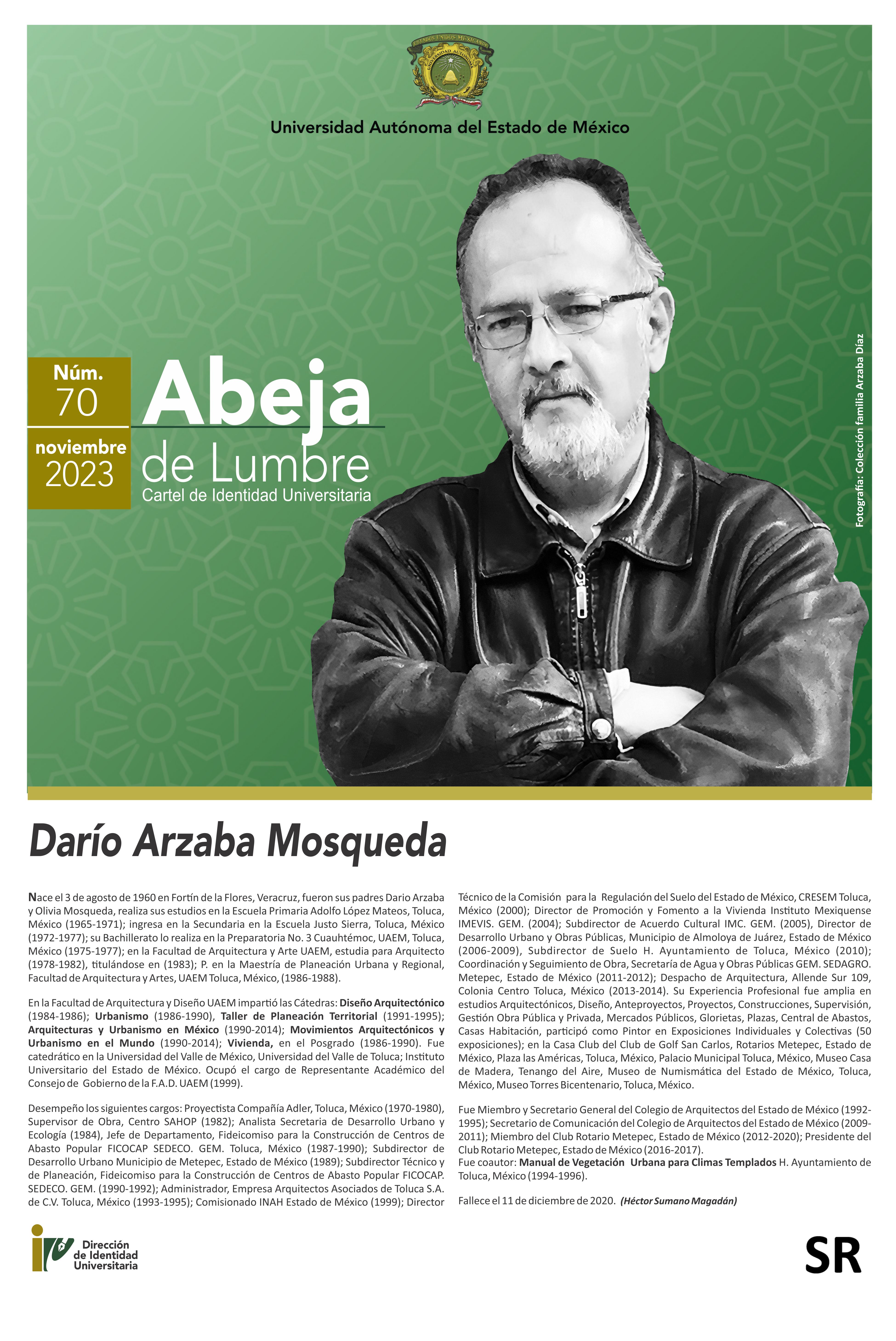 Cartel de Identidad Universitaria "Abeja de Lumbre" No. 70 Darío Arzaba Mosqueda