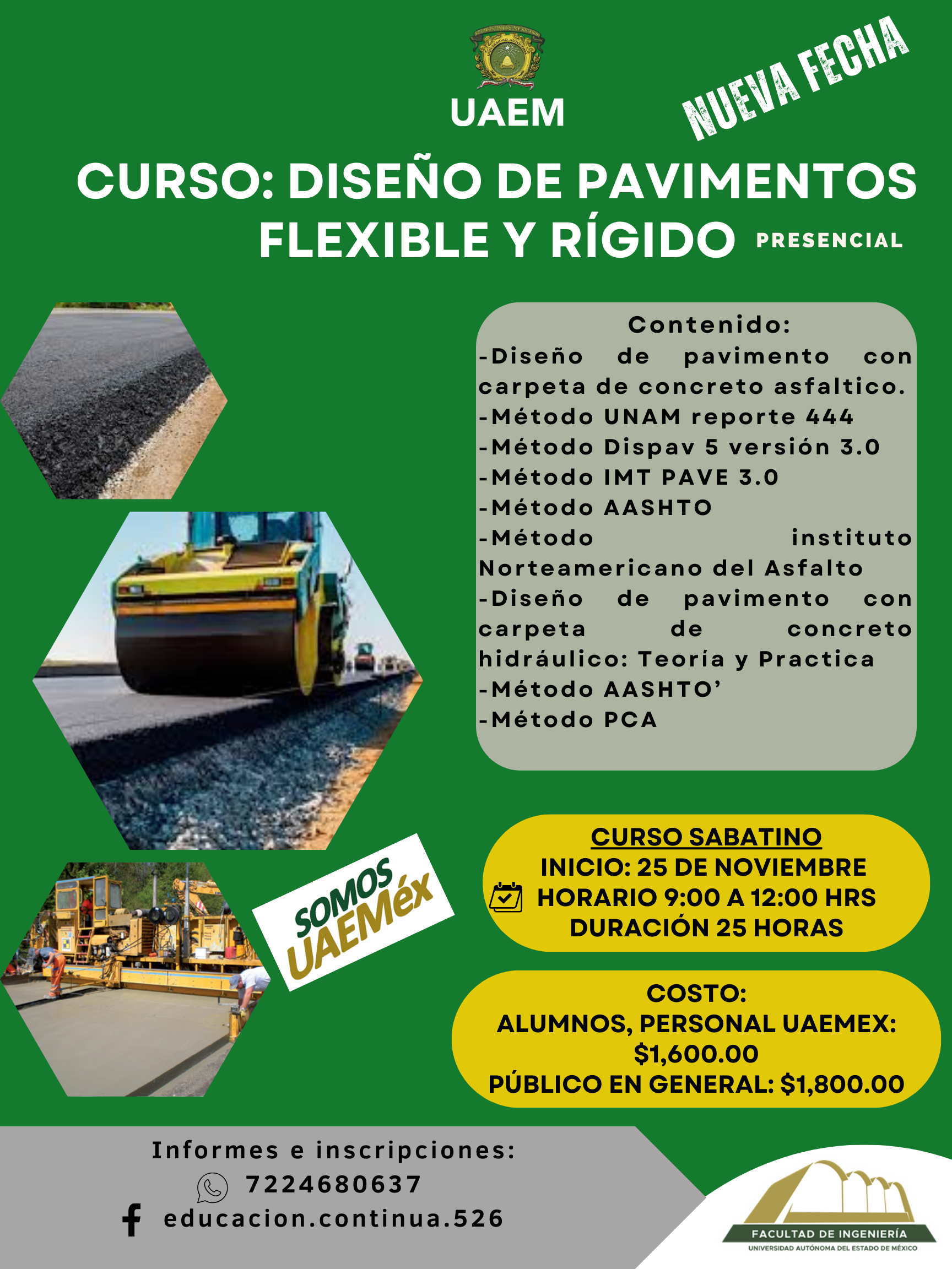 Diseño de pavimentos, rígido y flexible (nueva fecha, inicio confirmado)