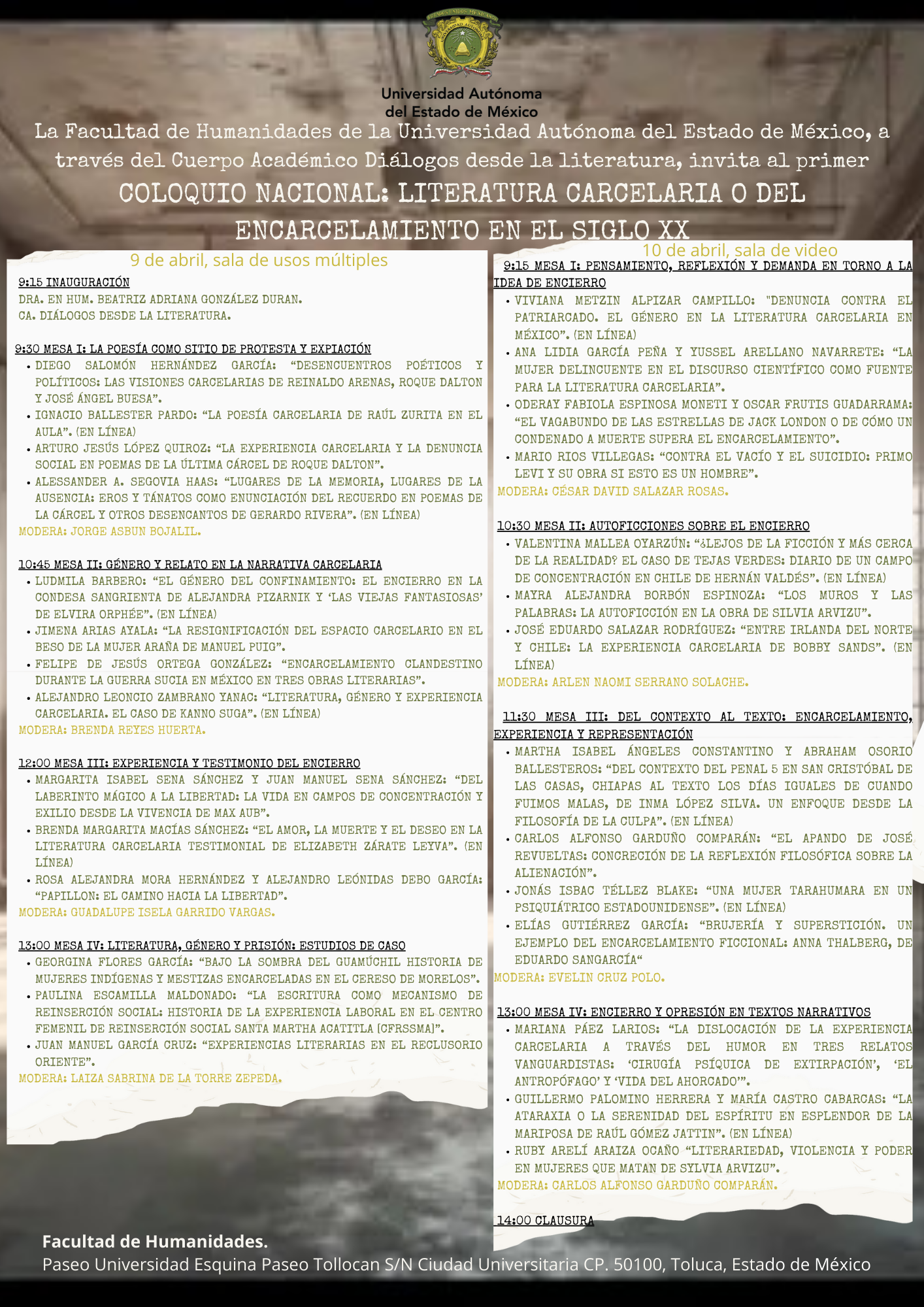 Programa del I Coloquio nacional Literatura carcelaria