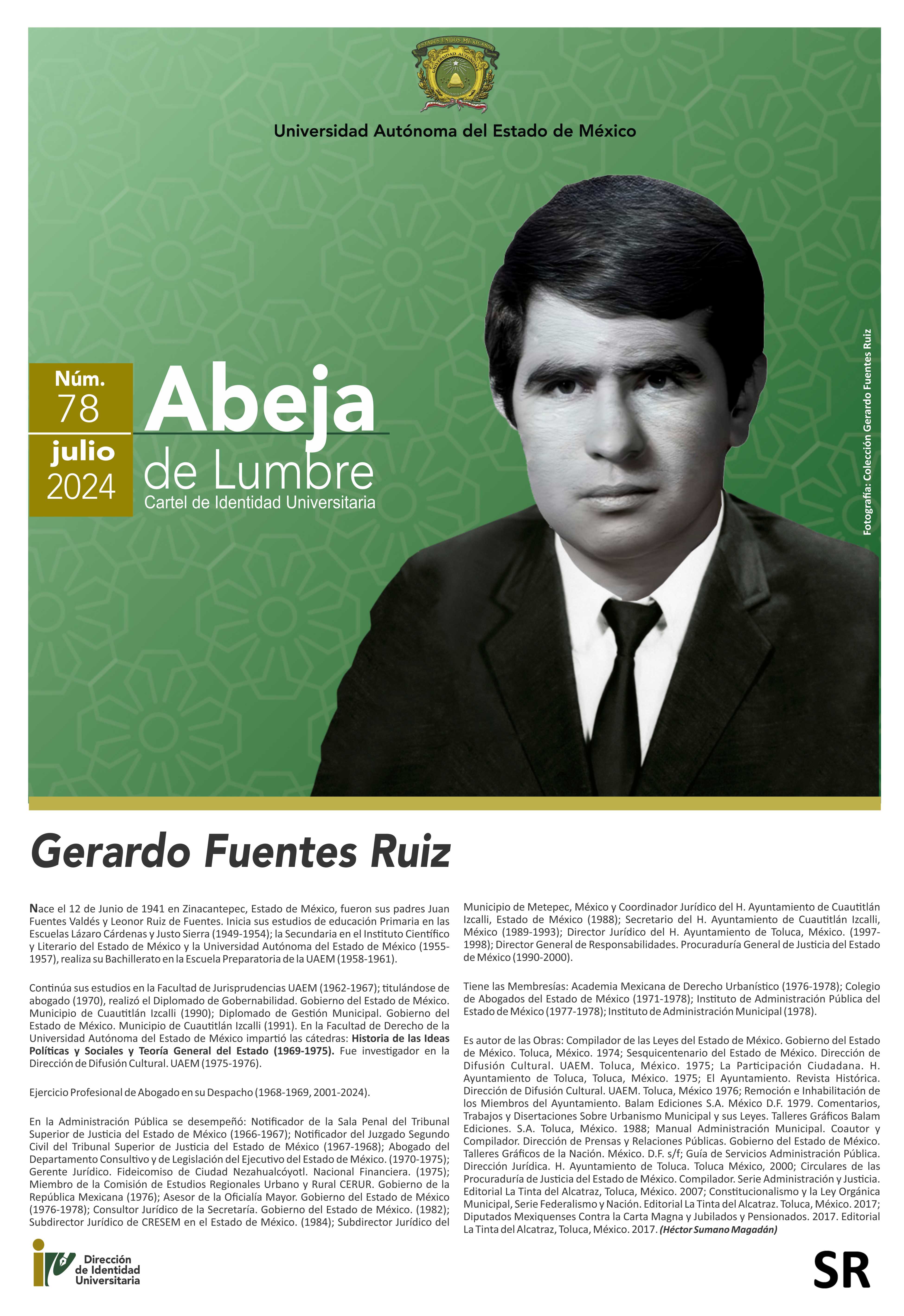 Cartel de Identidad Universitaria "Abeja de Lumbre" No. 78. Julio Gerardo Fuentes Ruiz