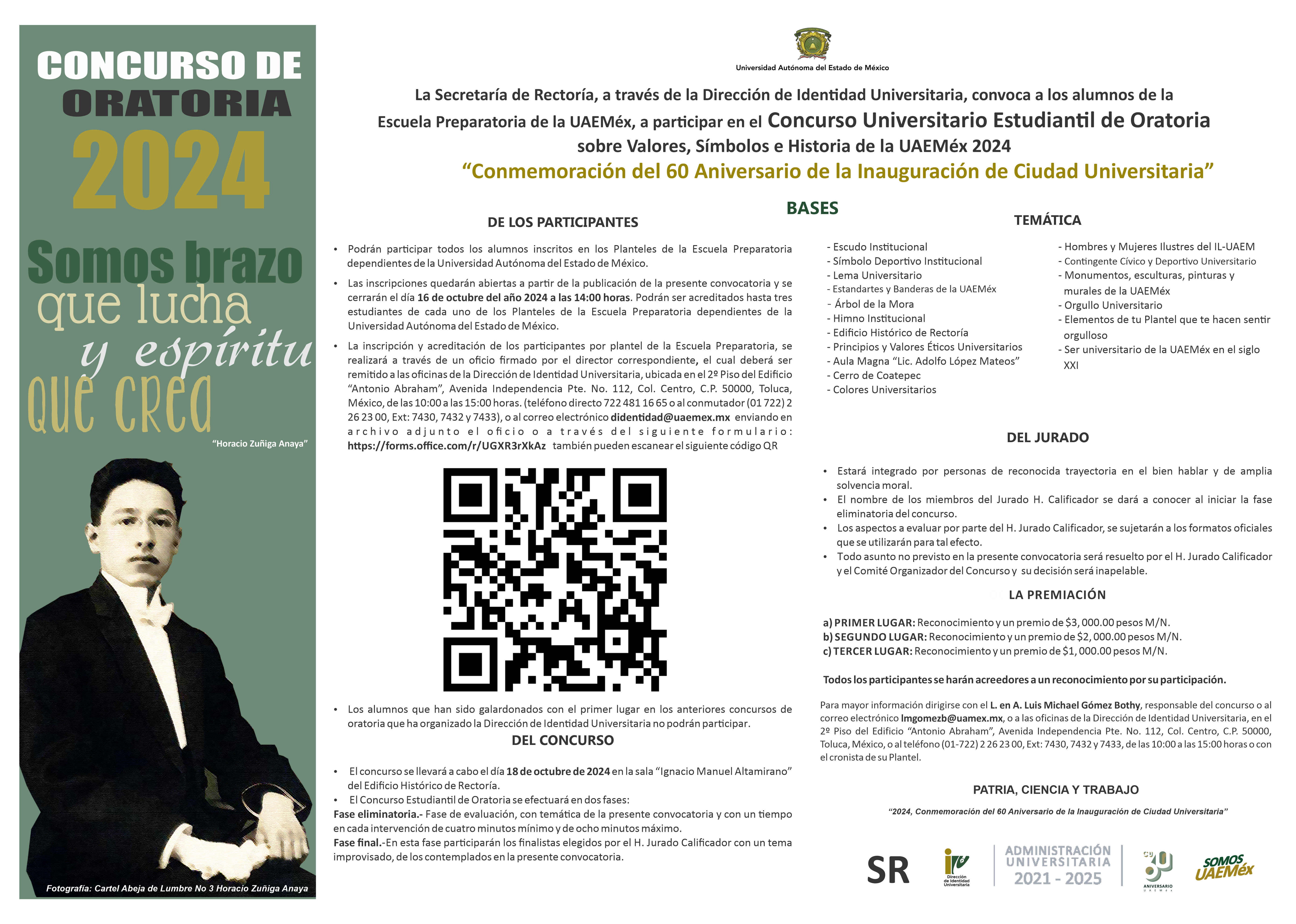 Concurso Universitario Estudiantil de Oratoria sobre Valores, Símbolos e Historia de la UAEMéx 2024 para alumnos de la Escuela Preparatoria dependientes