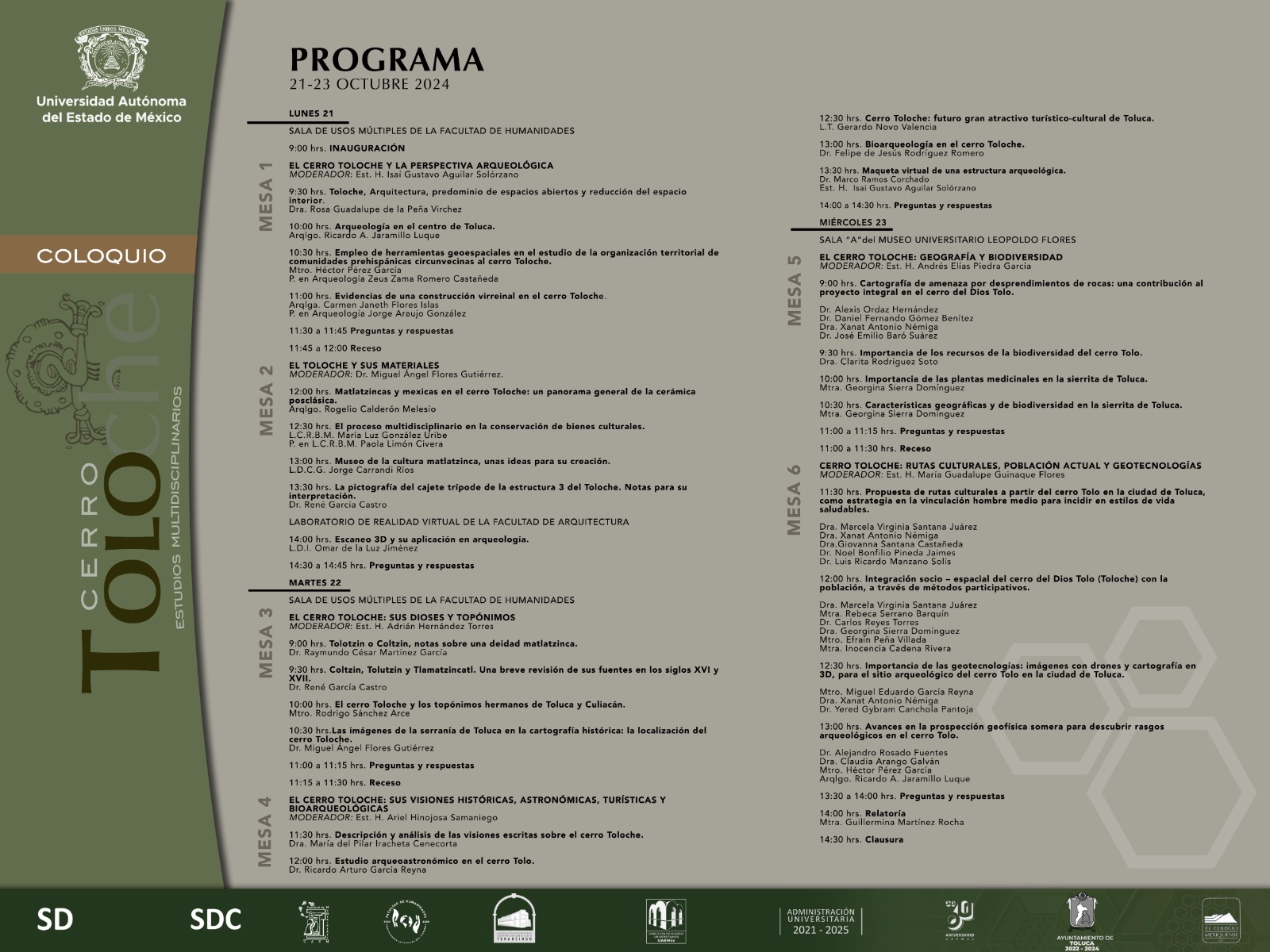 Invitamos a la comunidad Docente de la UAEMéx para que asistan al Coloquio El Cerro Toloche: Estudios Multidisciplinarios. Que se llevara a cabo del 21 al 23 de octubre en la Facultad de Humanidades y el Museo Leopoldo Flores.
