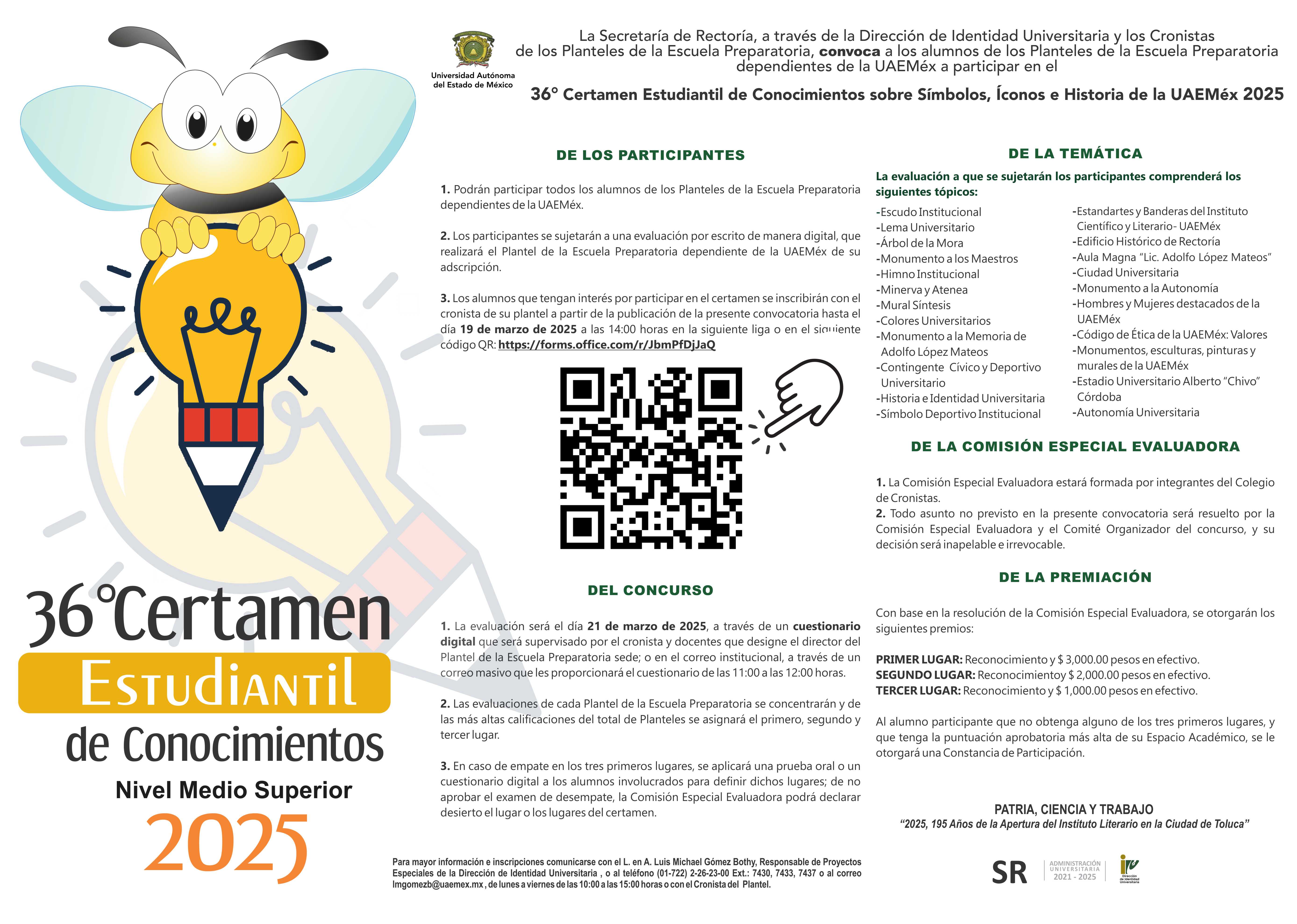 La idea es que en correo aparezca la abeja como botón y al dar click sobre ella se despliegue la información que se anexa y reenvíe al cartel del concurso, archivo que se anexa sobre el 36º. Certamen Estudiantil de Conocimientos sobre Símbolos, Íconos e Historia de la UAEMéx, para alumnos del Nivel Medio Superior dependientes de la UAEMéx