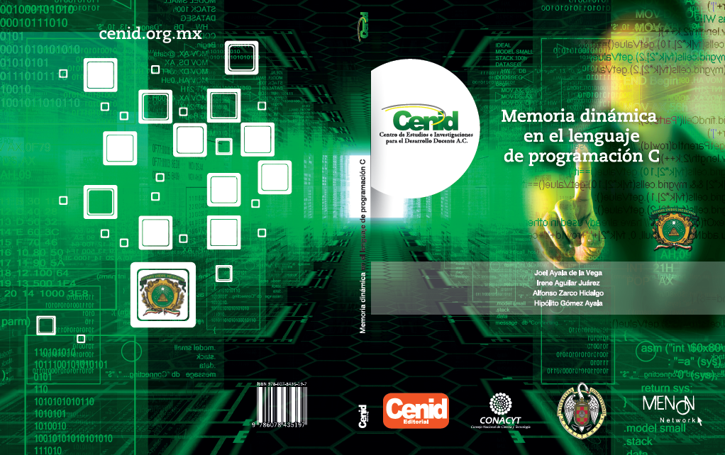 El libro contiene cinco capítulos. En los cuatro primeros capítulos se explica con ejemplos el uso de memoria dinámica del lenguaje de programación C estandard. Se realiza una revisión desde el uso de apuntadores o punteros con variables primitivas (como enteros), matrices, registros (struct), a funciones y se explica el pase de parámetros entre funciones.. En el capítulo cinco se dan ejemplos desde la programación de una pila hasta el uso de punteros en matrices de apuntadores a funciones. En el anexo se muestra un programa que versa sobre métodos numéricos para la solución de funciones polinomiales, sistema de ecuaciones lineales, determinante, ecuaciones características y valores característicos empleando memoria dinámica.