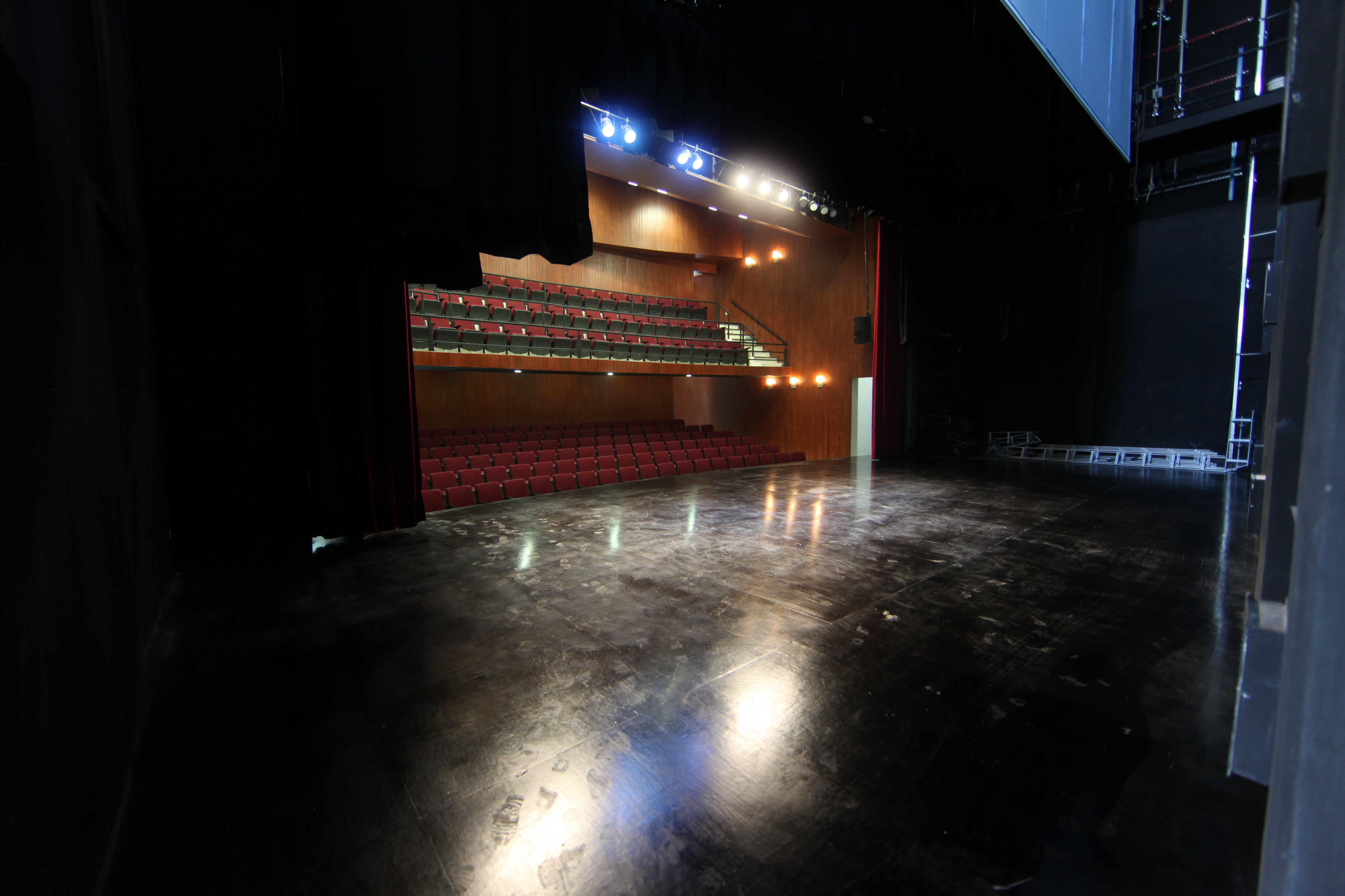 Capacidad para 198 espectadores, vestóbulo de acceso, área de recepción y un escenario equipado con un sistema mecánico que alcanza una altura de 15.5 metros, necesario para que se lleven a cabo obras de teatro de importante envergadura.