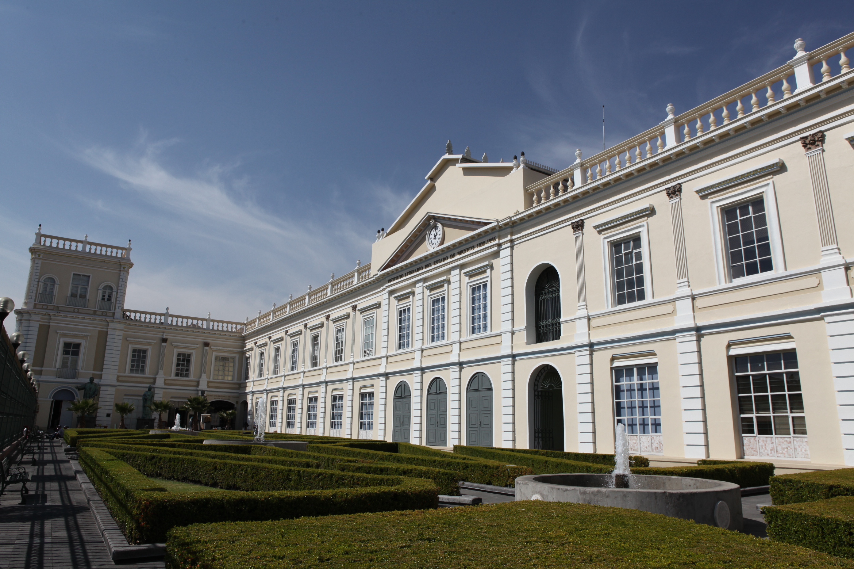 Imágenes del edificio central de rectoría de la Universidad Autónoma del Estado de México, en remodelación.