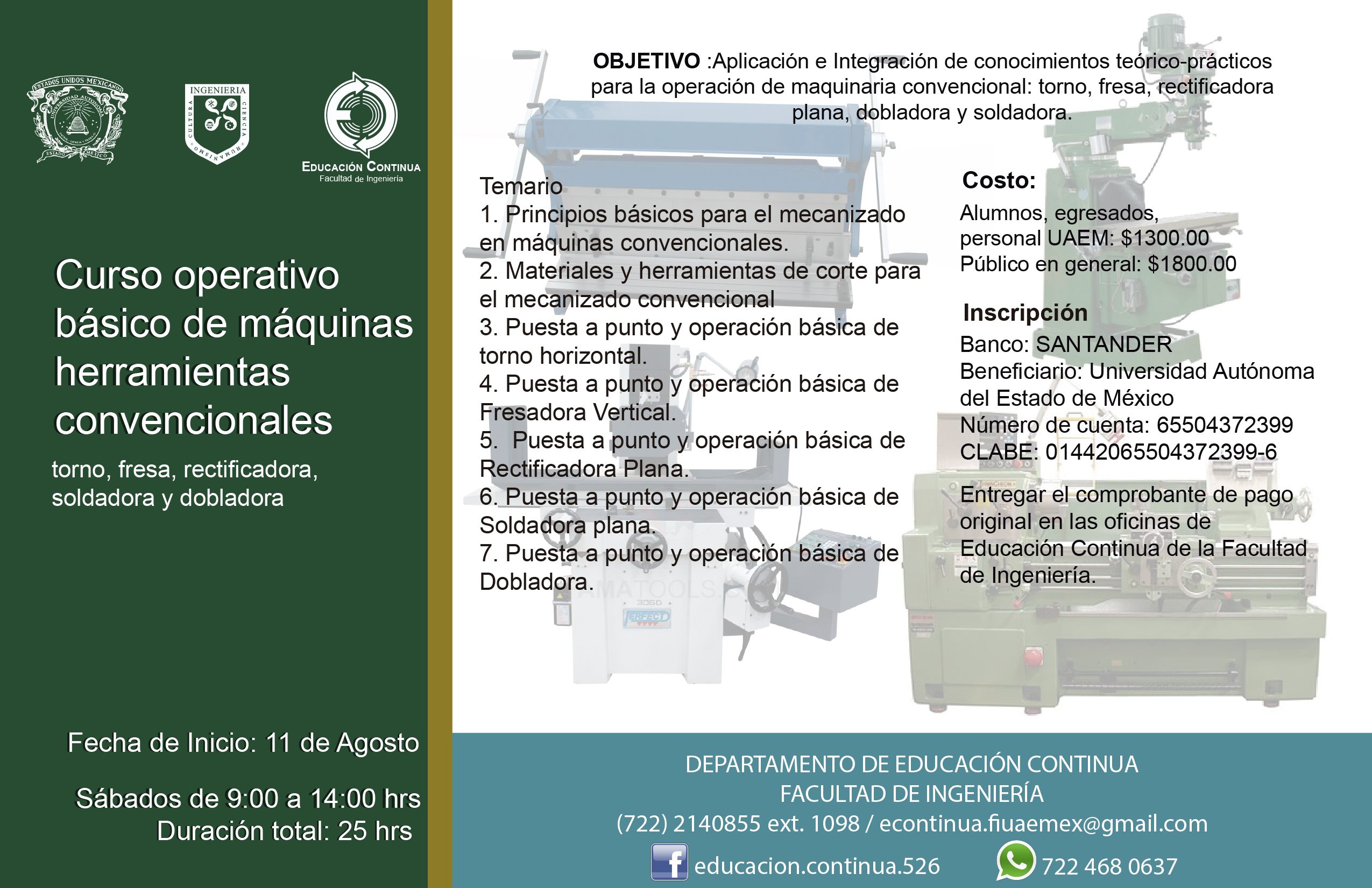 Curso operativo básico de maquinas y herramientas convencionales (torno, fresa, rectificadora, soldadora, dobladora.